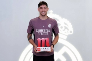 体育资讯3月20日讯 皇马官方宣布,中场球员巴尔韦德当选队内2月最佳球员。