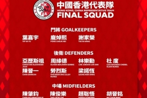 中国香港队最新名单:陈晋一、孙铭谦在列,9人效力中超中甲联赛