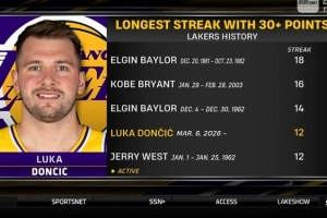 湖人队史连续30+场次: