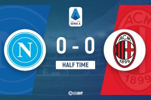 上半场补时1分钟。半场战罢,那不勒斯0-0米兰。