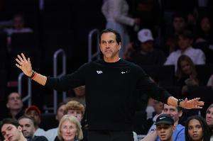 体育资讯3月11日讯 NBA常规赛,热火150-129战胜奇才。本场比赛,阿德巴约出战42分钟,投篮43中20,三分22中7,罚球43中36,砍下83分9篮板3助攻2抢断2盖帽。赛后,热火主教练斯波尔斯特拉接受了采访。